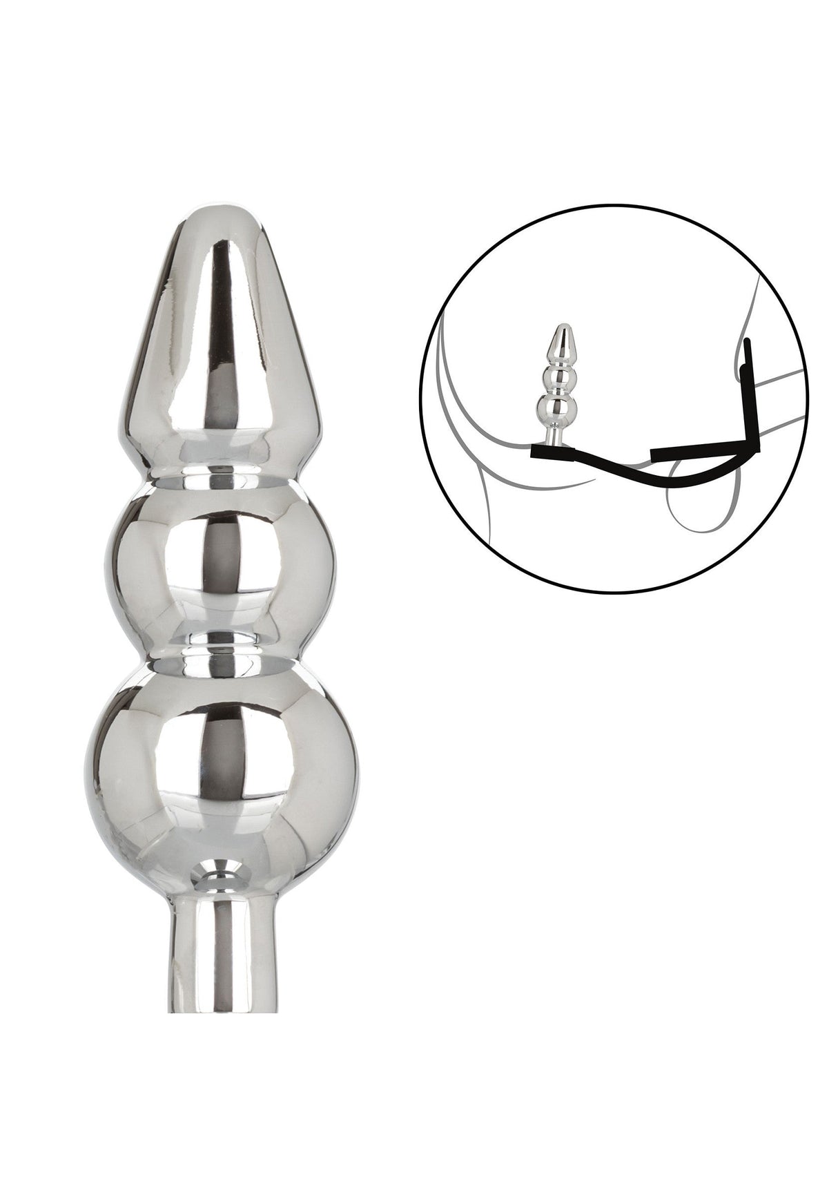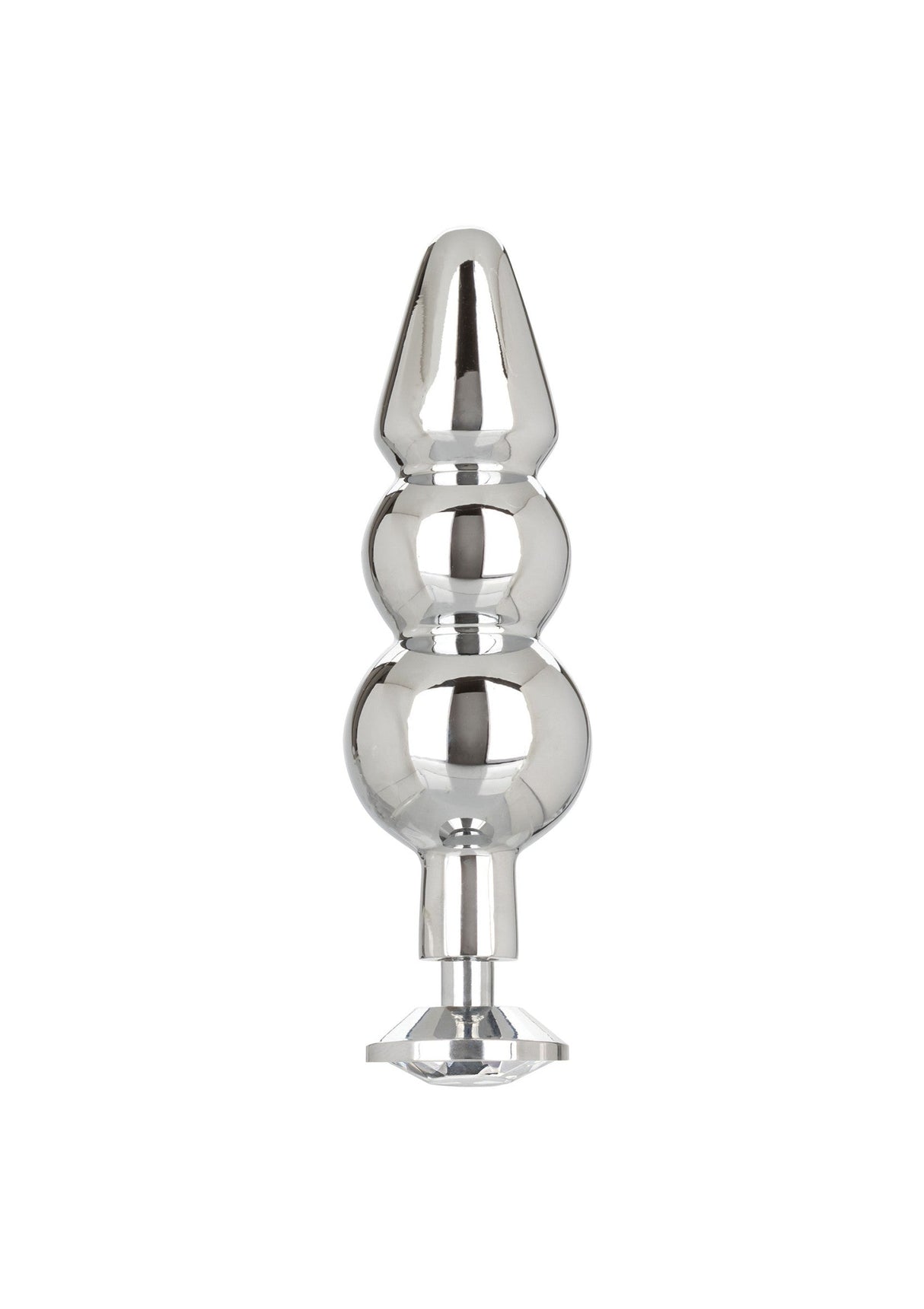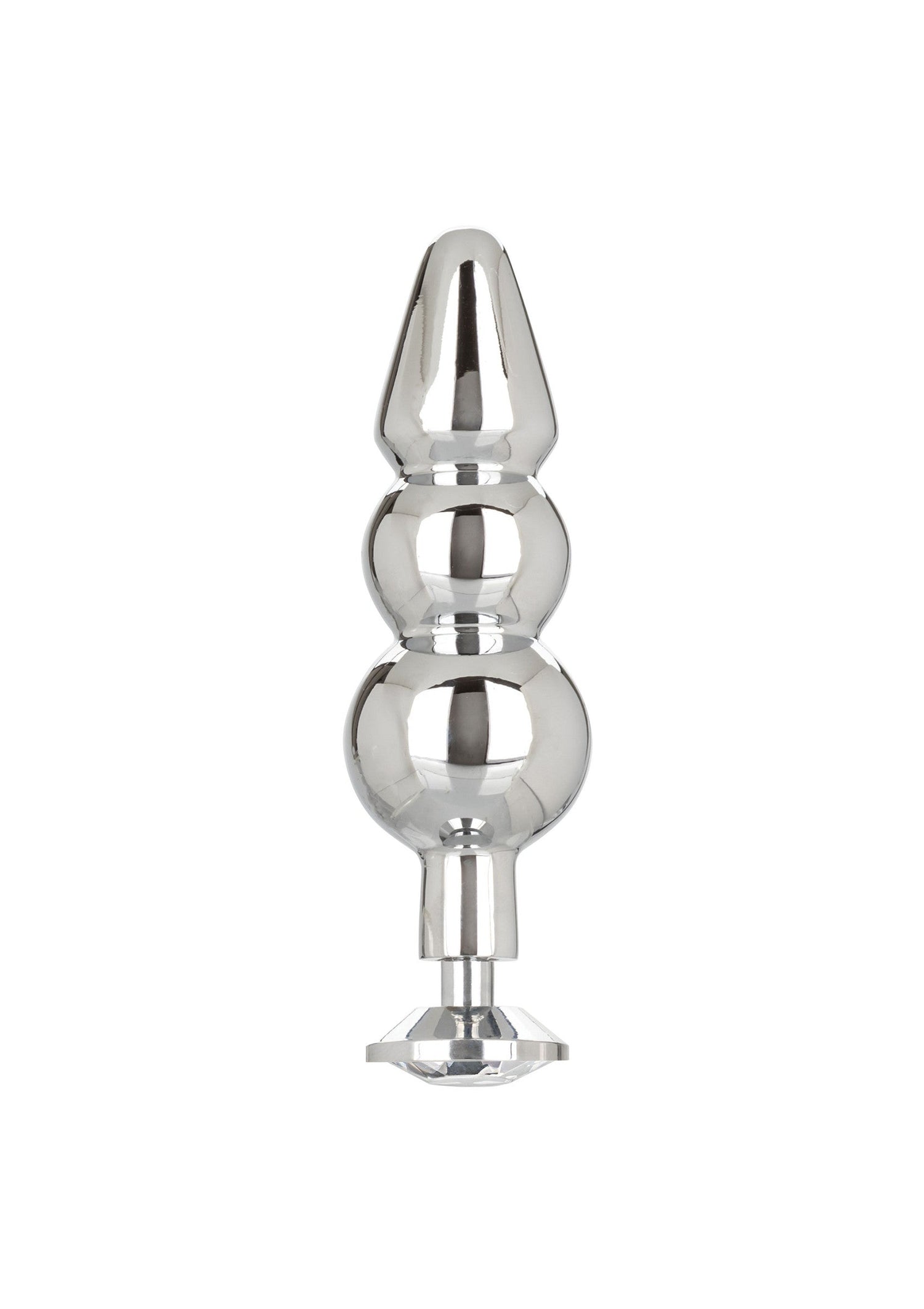 The flexible probe is made from a smooth, seamless aluminum alloy that retains heat or cold for a one-of-a-kind temperature play experience. While you expand your horizons with the sleek beaded plug, use the sparkling gem adorned base for steamy stimulation, effortless insertion and gentle removal. The view gets even better from behind with the sparkling gem base.