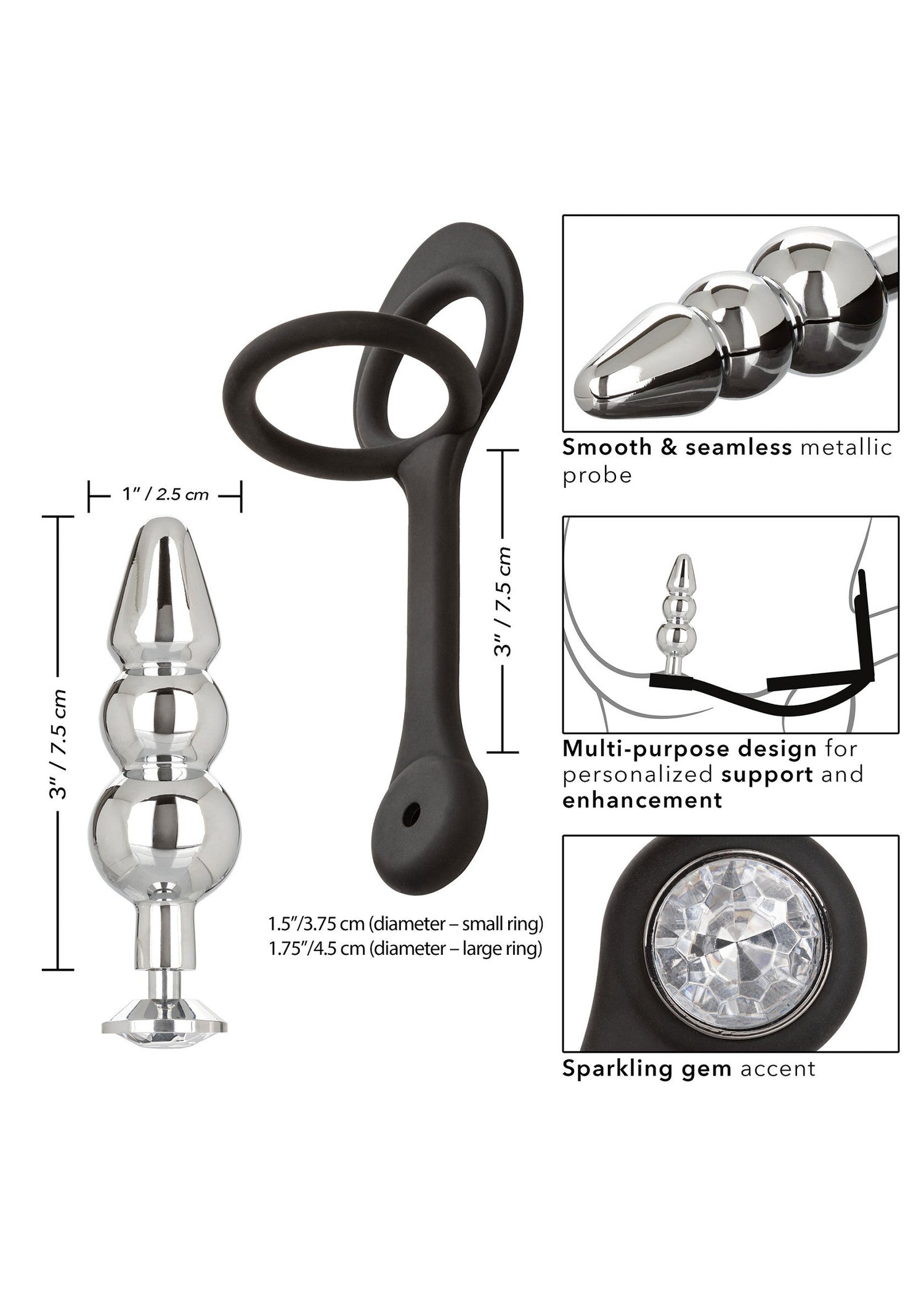The supple silicone dual enhancer was created to increase stamina, improve sensitivity and deliver superior erection support. Get playful by using the dual enhancer and metallic probe together, and don't forget they can be disassembled for easy cleaning.