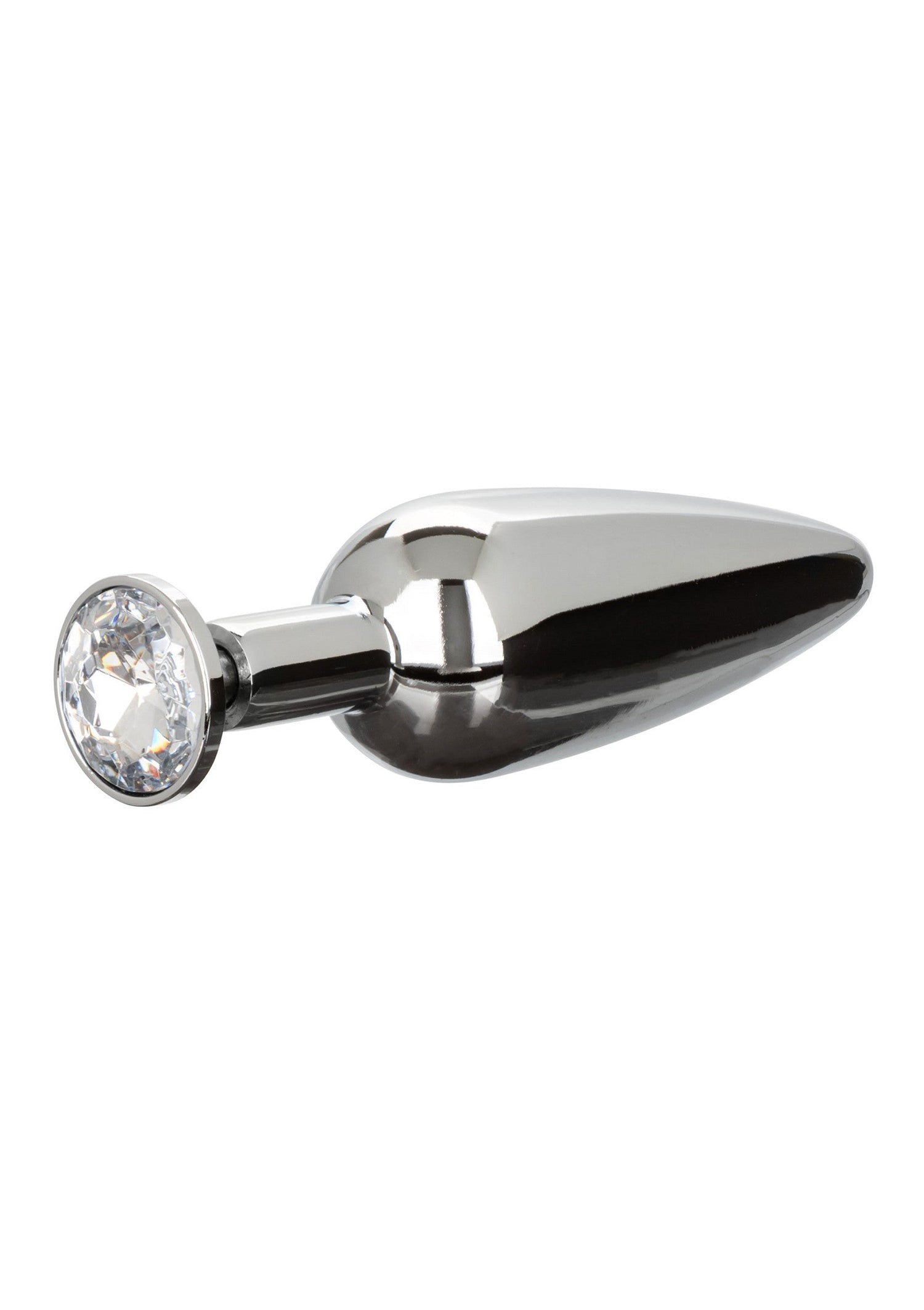 The flexible probe is made from a smooth, seamless aluminum alloy that retains heat or cold for a one-of-a-kind temperature play experience. While you expand your horizons with the sleek and slim plug, use the sparkling gem adorned base for steamy stimulation, effortless insertion and gentle removal. The view gets even better from behind with the sparkling gem base.