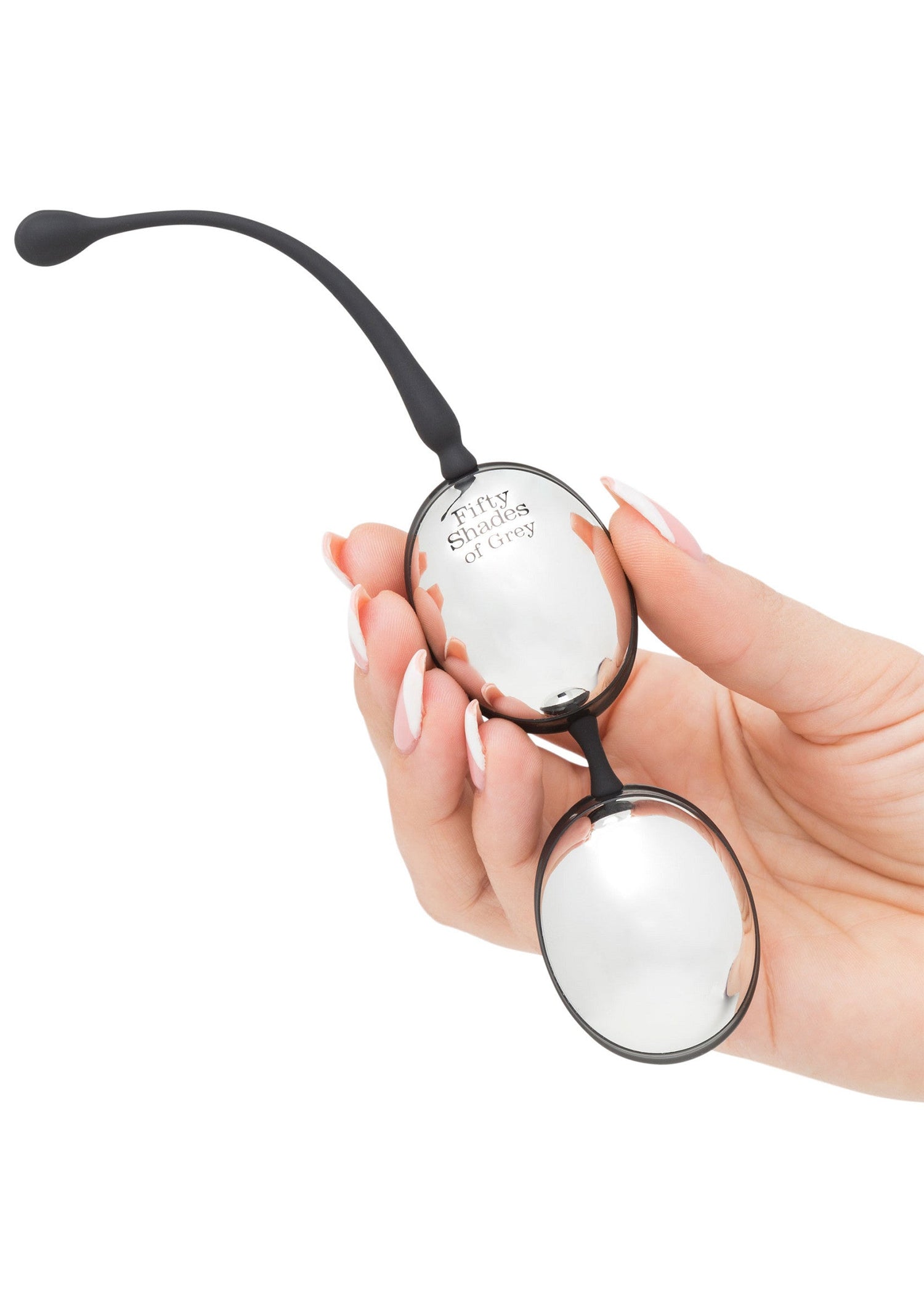 Explore tantalizing internal stimulation with the Fifty Shades of Grey Jiggle Balls. Weighing just 67g (2.3oz), these beginner-friendly balls offer a perfect introduction to the world of Kegel training and sensual teasing. Encased in smooth silver plastic, each ball moves with your body's rhythm, gently massaging internal sweet spots with every step. Wear them discreetly during daily activities or intimate play to heighten arousal and tone your pelvic floor.