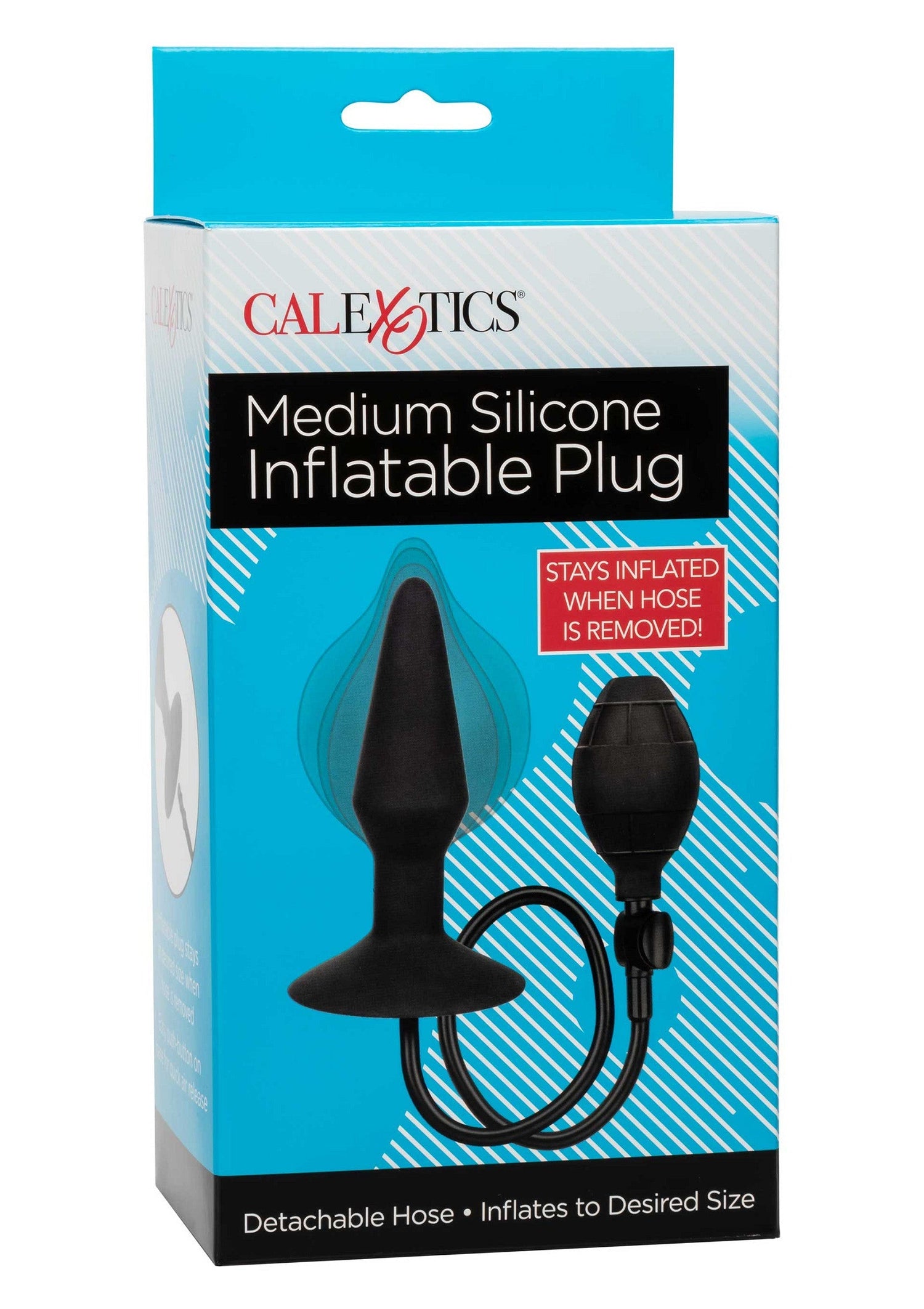 Discover custom-sized pleasure with the CalExotics Medium Silicone Inflatable Plug. Featuring a flexible tapered body, suction cup base, detachable hose, and quick-release valve, this plug is perfect for solo or partnered play.