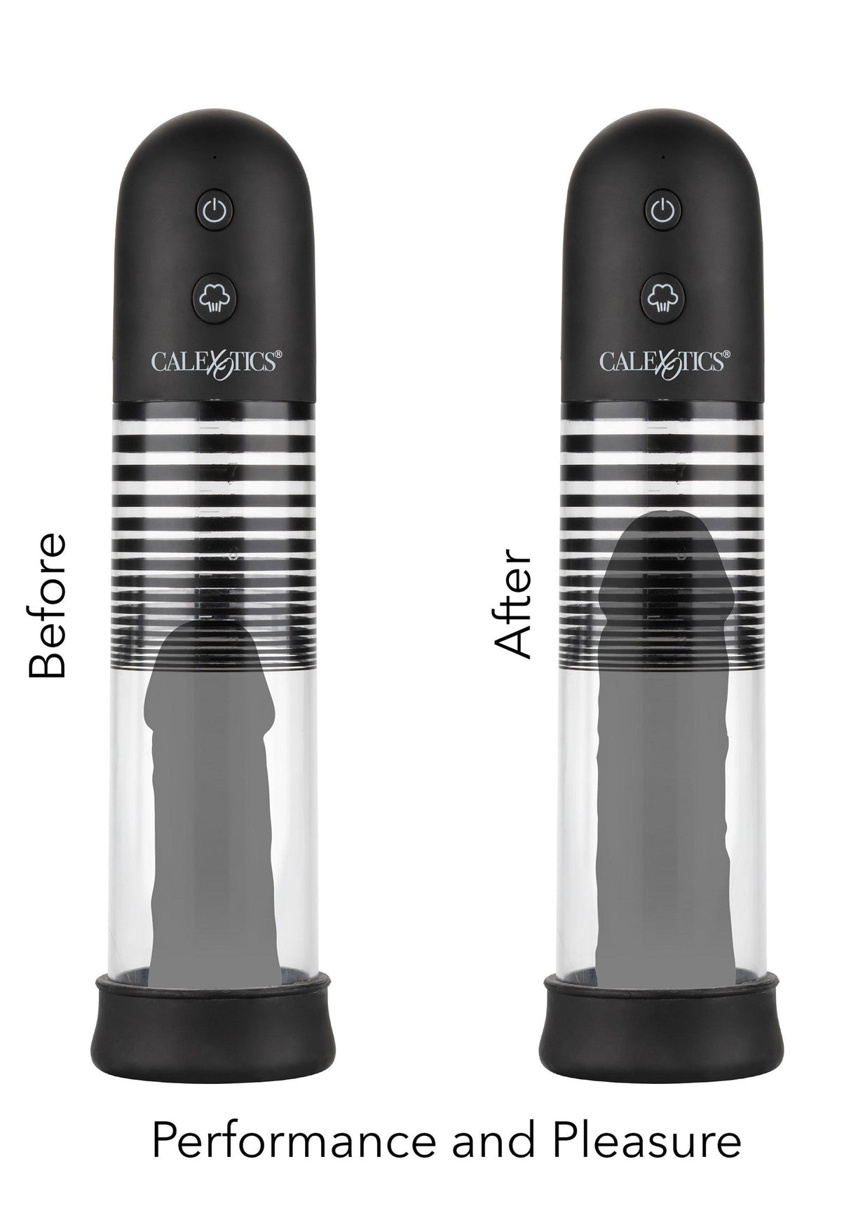 Achieve bigger, stronger, longer-lasting results with the Optimum Series Rechargeable EZ Pump Kit. This automatic penis pump features easy-touch controls, a quick air release button, and a dual ultra-soft silicone enhancer ring for added stimulation and stamina. The nubbed, open-ended sleeve creates a perfect seal, offering intense suction and pleasurable stroking during each use. Designed for both enhancement and sensation, it also helps increase endurance and amplify size over time. The clear cylinder features incremental markings for tracking progress, while the USB-rechargeable motor delivers up to 3 hours of pumping power after a 2-hour charge. Whether you're new to pumping or upgrading your experience, this sleek, body-safe TPR system is user-friendly and hygienic. Use with water-based lubricant for optimal comfort and clean thoroughly after use with warm water or toy cleaner. Safe, discreet, and effective — this kit is the complete package for intimate performance improvement.
