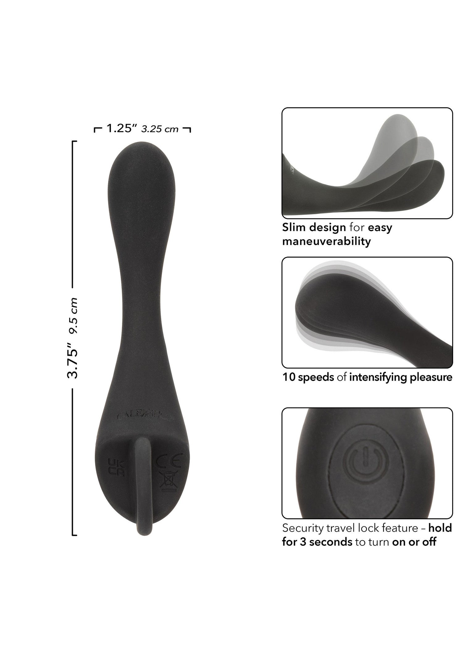 Embark on an unforgettable journey of pleasure with the Dr. Joel Kaplan Rechargeable Prostate Locator, expertly designed to hit just the right spot. This slim, sleek probe is tailored for those seeking precise stimulation, featuring an easy retrieval ring for enhanced control during play. Whether you're exploring solo or with a partner, this vibrator offers a seamless and comfortable experience. Equipped with 10 incremental speeds of vibration, the Prostate Locator allows you to escalate your pleasure at your own pace. Each setting is crafted to provide intense, focused stimulation that can be adjusted to match the rhythm of your desire.