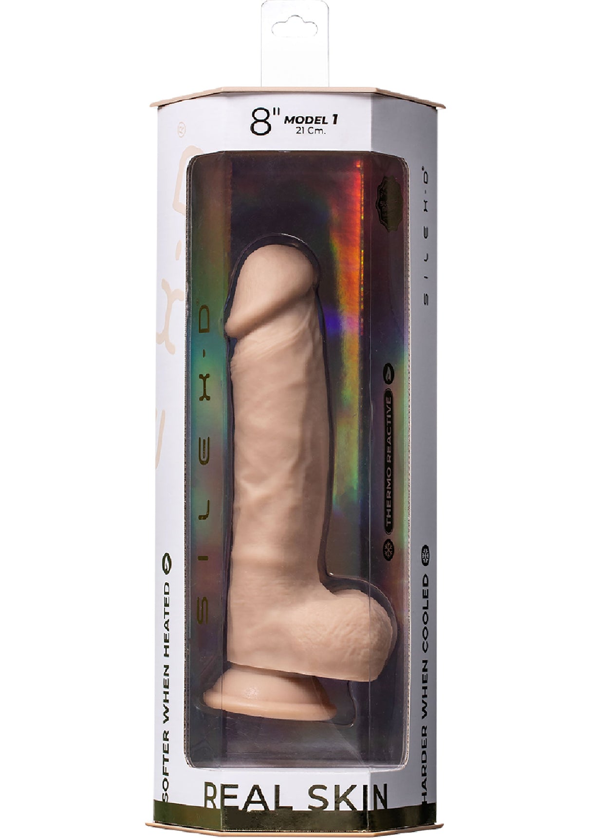 Made from 100% super-soft liquid silicone and SILEXPAN, it mimics human skin with a soft exterior and firm core. Thermo-reactive silicone adjusts to temperature – harder when cooled, softer when warmed. Textured veins enhance stimulation, while its ergonomic design ensures comfort and easy handling. Waterproof, phthalate-free, hypoallergenic, and nonporous, it guarantees a safe and hygienic experience. With a strong suction base for hands-free fun, enjoy versatile pleasure in or out of water. Discover next-level realism with the Silex-D Real Skin Model 1 8".