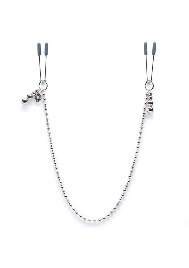 Explore the thrilling edge between pleasure and pain with the Fifty Shades Darker Chained Nipple Clamps. Designed for erotic excitement, these silicone-tipped clamps increase blood flow to the nipples for heightened sensitivity. Tug on the connecting chain for an added pinch or enjoy them gently for a steady buildup. Whether you're a beginner or seeking more intense sensations, these clamps add new dimensions to foreplay and climax.