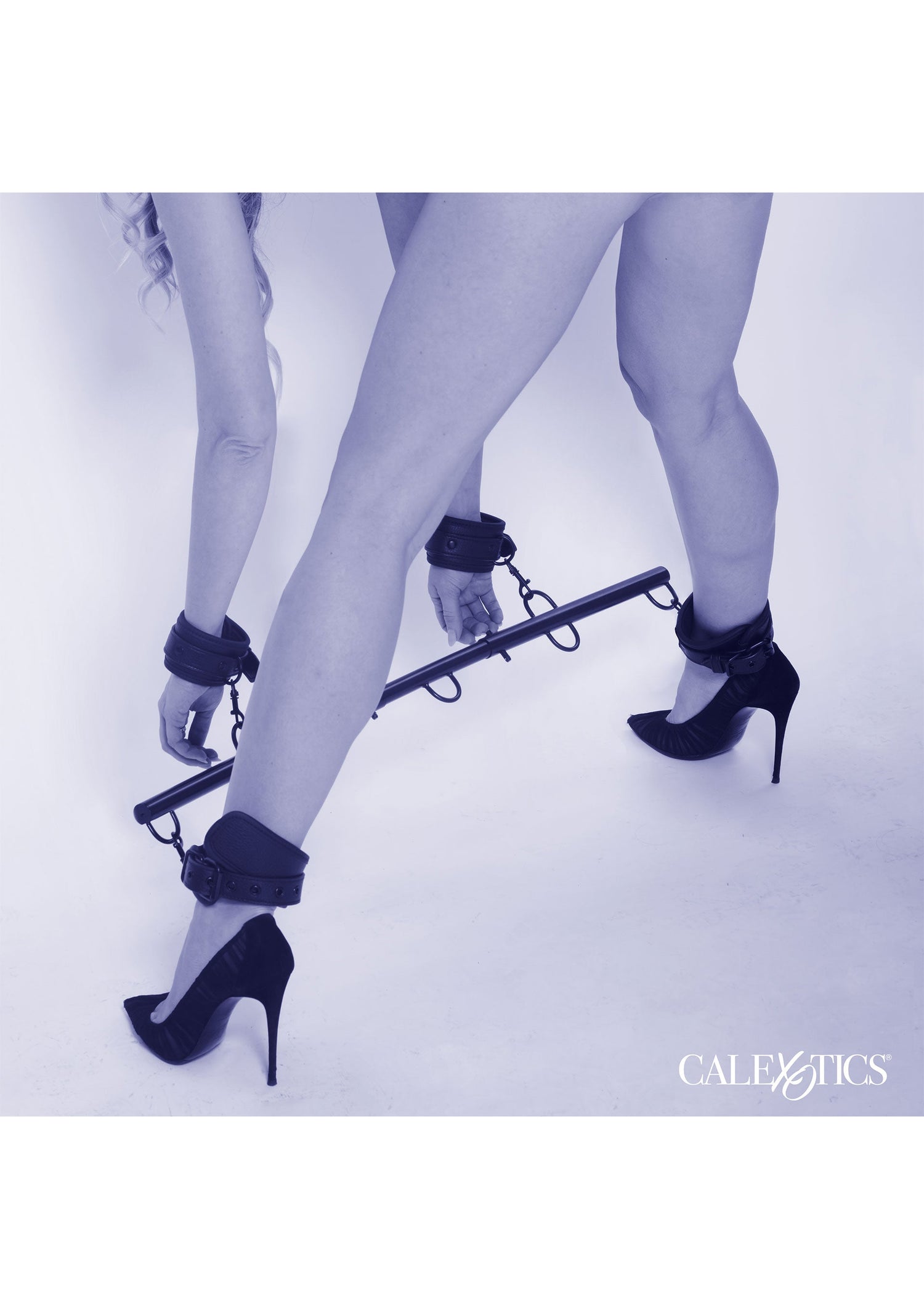 This adjustable spreader bar extends from 25.75"/65.5 cm to 30.25"/77 cm, keeping legs apart for exciting restraint play. It includes detachable ankle cuffs with secure buckles for comfort and safety. Swivel clasps and D-rings allow versatile positions. Strong and textured, the bar also disassembles for discreet storage or travel.