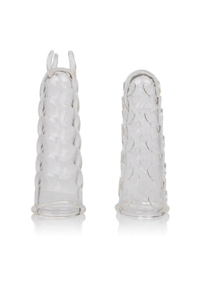 Genieße neue Gefühle der Selbstbefriedigung mit den vielseitigen Finger Teasers. Die einfach zu verwendenden Fingerstimulationsmanschetten werden als Paar geliefert und ermöglichen aufregende erotische Erkundungen, die nur durch deine Fantasie begrenzt sind. Die Finger Teasers sind aus weichem und geschmeidigem, phthalatfreiem TPE gefertigt, das nicht parfümiert ist, und bieten dir ein Maximum an Stimulation. Die exotischen Fingerspitzen sind sinnlich verwirbelt und mit herzförmigen Lustnoppen versehen, die für ein intensives, sinnliches Kribbeln und Gefühl sorgen. Verwende ein Gleitmittel auf Wasserbasis für maximalen Genuss.Verwende ein Gleitmittel auf Wasserbasis für maximalen Genuss.Reinige die Finger Arouser Sleeves vor und nach jedem Gebrauch mit einer milden Seifenlauge oder einem Toy Cleaner Spray.