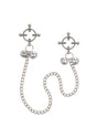 Bring etwas Spaß in dein Sexleben mit der Nipple Grips 4-Punkt Nippelpresse mit Glocken. Erhöhe dein Nippelspiel mit einer einfachen Drehung der Schrauben. Ziehe die Schrauben genau so fest an, wie du es möchtest, und ziehe an der Kette, um ein befriedigendes Ziehen zu spüren, während die Glocken vor Vergnügen klingeln.