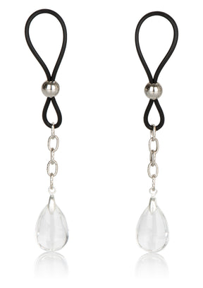 Schlüpfe in etwas Sinnliches mit dem Nipple Play Non-Piercing Nipple Jewelry. Diese ultra-femininen Schmuckstücke sind perfekt für neckische Spiele und eine ausgedehnte Stimulation der Brustwarzen. Die verstellbaren 2,25-Zoll-Silikonschlaufen sind weich und dehnbar und haben schöne Perlenverschlüsse für eine individuelle Passform. Die baumelnden Anhänger aus klarem Kristall schwingen mit deiner Bewegung mit und verstärken jede Berührung. Die nickelfreien Eisenketten sind eine stilvolle und anregende Ergänzung für deine intimen Stunden. Trage eine kleine Menge Erregungsgel auf, um die Empfindungen zu intensivieren. Diese einfach zu tragenden Accessoires sind sowohl für Anfänger als auch für erfahrene Benutzer geeignet. Reinige sie vor und nach dem Gebrauch immer mit einem Toy Cleaner Spray.
