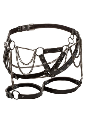 Step into the realm of bold sensuality with the Euphoria Collection Thigh Harness With Chains, effortlessly fusing daring style and luxurious comfort. This premium thigh harness, adorned with heavy-duty metal chains, is a statement piece for those who revel in seduction and power. Crafted for adaptability, it features easily adjustable waist and thigh straps, ensuring a snug, comfortable fit. The cascading chains add visual impact and tantalizing weight, enhancing the sensory experience. Lined with soft, plushy velvet, it offers a gentle caress against your skin, contrasting with the vegan leather exterior. Meticulously constructed for durability, it's a tool for expression that fits seamlessly into your desires.