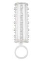 The Sensation Enhancer is a super tight, open-end extension sleeve with a sensually beaded shaft. The super sized enhancer wraps tight around your pleasure tool to increase girth, length and pleasure. While you thrill your lover with increased girth and stimulating beads, the fulfilling enhancer’s powerful erection support and open end design results in explosive results for both of you. The erotic enhancer sleeve’s ultra stretchy material and spacious chamber is made to fit even the biggest man. The textured chamber and built-in scrotum strap provide increase stimulation and powerful support. Wrap your pleasure tool in this super stretchy sleeve to easily increase stamina, stimulation and orgasmic pleasure. The flexible enhancer is made from a hygienically superior TPE. This body safe material is unscented and phthalate free to keep your most sensitive spots happy and healthy.