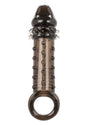 The Ultimate Stud Extender is your ticket to unforgettable pleasure for both partners. With 2 inches of added length, thrilling studded texture, and a built-in scrotum strap for support, this super-stretchy TPE sleeve boosts stamina, girth, and confidence. Its closed-end ribbed chamber creates powerful suction, thrilling every stroke. Made from body-safe, unscented, and phthalate-free material, it’s comfortable to wear and easy to maintain. Just wash with warm water and soap after each use. Perfect for enhancing partner play and intensifying every moment, this extender is a must-have for anyone craving more size and sensation. Use with a quality water-based lube for the smoothest experience and dive into a night of unforgettable pleasure.