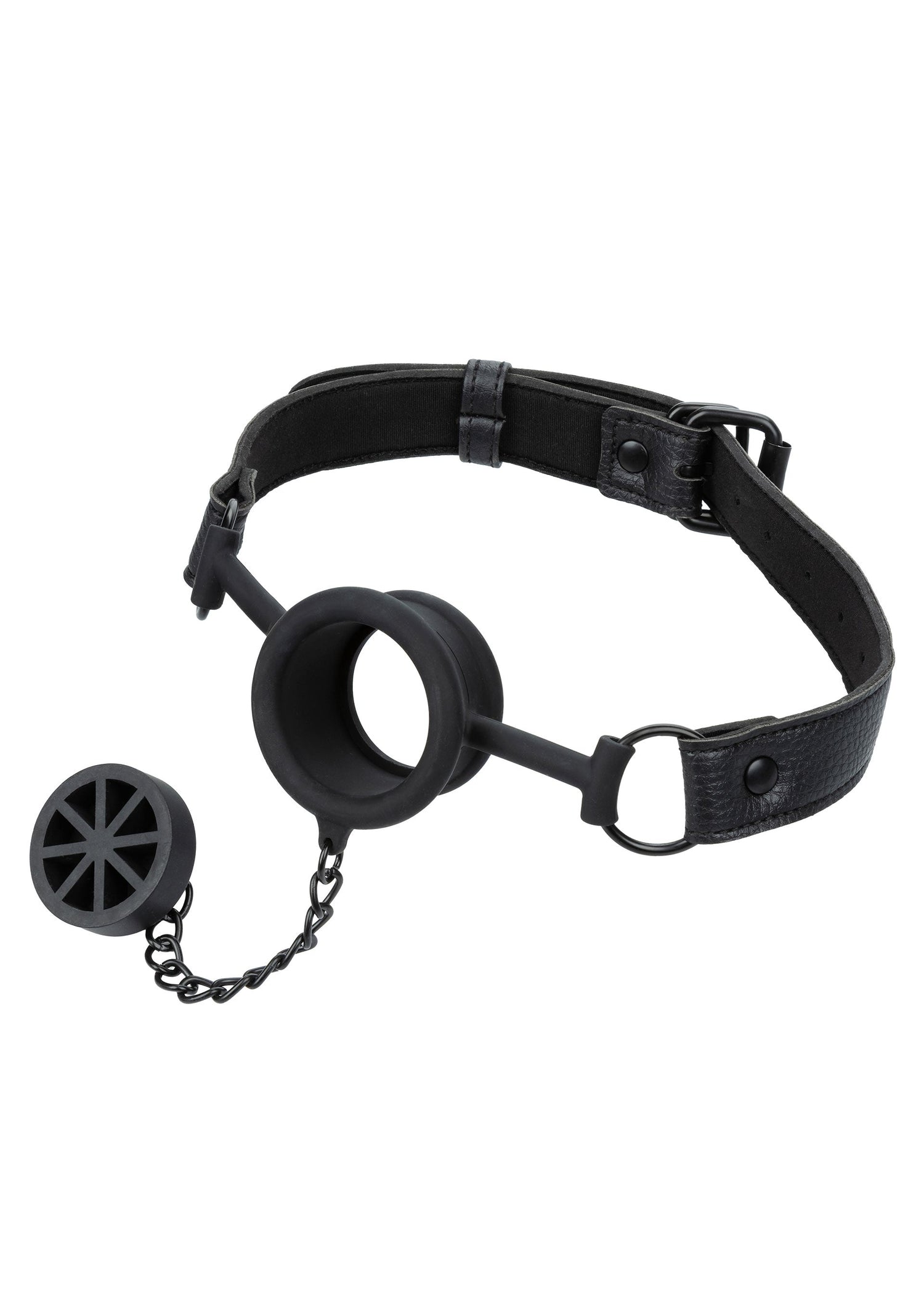 The Stopper Gag offers the choice of open or closed mouth play. Made from soft silicone, it has a 1.5"/3.75 cm opening and an adjustable strap with buckle closure for a secure fit. The sturdy, double-stitched design is built to last, while the textured finish adds style. A bold tool for beginners or experienced players alike.