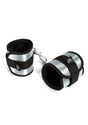 Finished in metallic silver satin, and presented in a matching satin storage bag, these cuffs are ideal for beginners looking to explore the world of bondage and restraint.
