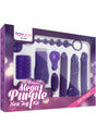 The Mega Purple Sex Toy Kit provides your customer with 9 erotic toys that guarantee a night of purple themed passion. The naughty box contains love balls, anal beads, a studded penis sleeve, a mini masturbator, a cock ring, a vibrator with matching penis sheath, vibrating egg and a flexible dildo.Batteries: 4 AA (included). Made of ABS plastic, phthalate free PVC and TPE.