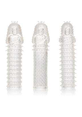 De 3-delige Extension Kit is een set van 3 superstrakke, gesloten verlenghulzen met een geribbelde textuur aan de binnen- en buitenkant voor intense stimulatie. Deze vergrotende enhancerhulzen sluiten strak aan om de omtrek, lengte en explosief genot voor iedereen te vergroten. Het ultra-rekbare materiaal en de ruime kamer van de erotische enhancerhuls zijn gemaakt om zelfs de grootste man te passen. Terwijl jij je geliefde verwent met een grotere omtrek en stimulerende kietelaartjes, resulteren de krachtige erectieondersteuning en de getextureerde kamer van de bevredigende enhancer in explosieve resultaten voor jullie beiden. De getextureerde kamer en erectieverbeteraar zorgen voor meer stimulatie en krachtige ondersteuning. Wikkel je genotsspeeltje in deze super-rekbare huls om eenvoudig je uithoudingsvermogen, stimulatie en orgastisch genot te vergroten. De flexibele enhancer is gemaakt van een hygiënisch superieur TPR. Dit lichaamsveilige materiaal is ongeparfumeerd en ftalaatvrij om je meest gevoelige plekjes blij en gezond te houden.