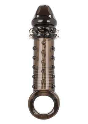 De Ultimate Stud Extender is jouw ticket naar onvergetelijk genot voor beide partners. Met 5 cm extra lengte, een spannende textuur met noppen en een ingebouwde balzakband voor ondersteuning, verhoogt deze superrekbare TPE sleeve je uithoudingsvermogen, omvang en zelfvertrouwen. De gesloten geribbelde kamer creëert een krachtige zuigkracht, waardoor elke stoot opwindend is. Gemaakt van lichaamsveilig, ongeparfumeerd en ftalaatvrij materiaal, is hij comfortabel om te dragen en gemakkelijk te onderhouden. Was hem na elk gebruik met warm water en zeep. Perfect om het partnerspel te verbeteren en elk moment te intensiveren, is deze extender een must-have voor iedereen die verlangt naar meer volume en sensatie. Gebruik met een hoogwaardig glijmiddel op waterbasis voor de meest soepele ervaring en duik in een nacht vol onvergetelijk genot.