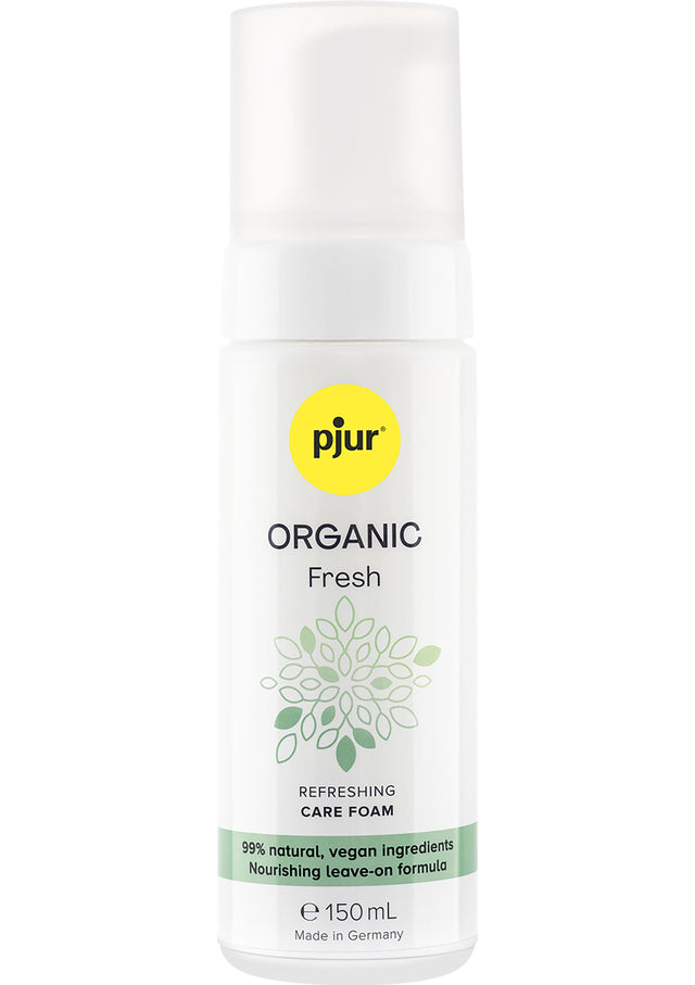 pjur ORGANIC Fresh is een zachte, verfrissende verzorgingsschuim voor de dagelijkse intieme hygiëne. De parfumvrije formule verandert elk tissue in een zacht, vochtig reinigingsdoekje, waardoor je de huid altijd en overal kunt reinigen en verfrissen, zonder water of spoelen.