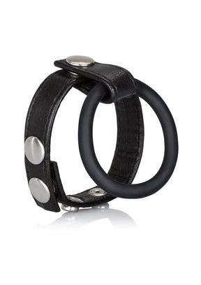 Enjoy longer, harder performance with the Medium Leather Ball Spreader. This leather strap and rubber ring combo fits comfortably around the penis and scrotum to increase stamina and enhance sensations.